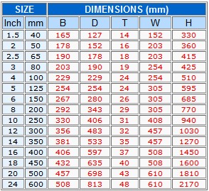 جدول (3): جدول وزنی گیت ولو یا شیر کشویی کلاس 600
